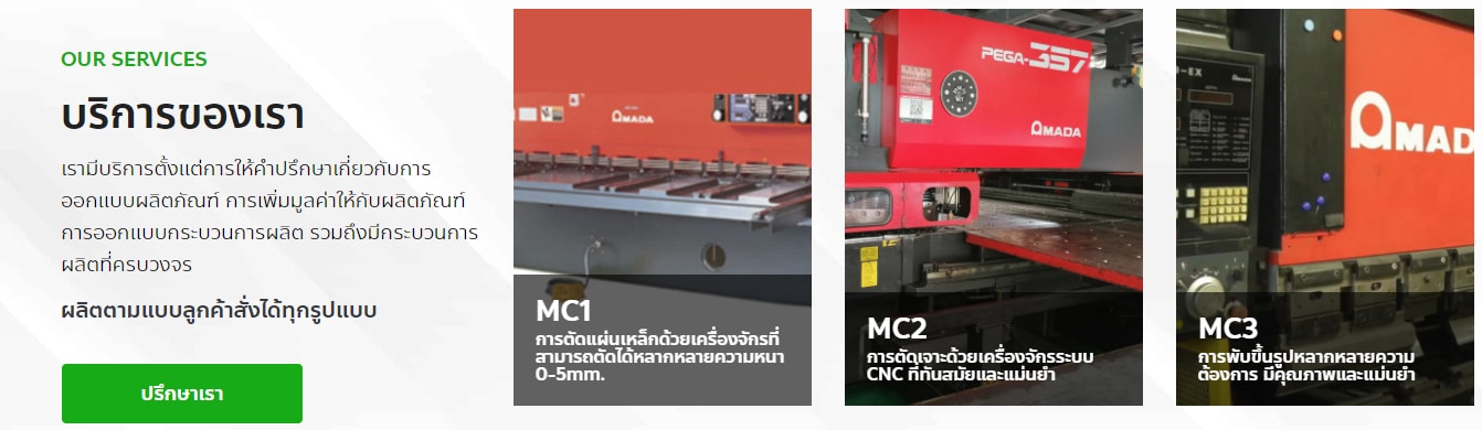 เราเป็นผู้ให้บริการงานโลหะแผ่นครบบวงจร ตอบโจทย์ความต้องการของลูกค้าในทุก ๆ ด้าน ทั้งด้านคุณภาพ ราคาที่เหมาะสม และการส่งมอบที่รวดเร็วตรงตามกำหนดเวลานัดหมาย เรามีบริการตั้งแต่การให้คำปรึกษาเกี่ยวกับการออกแบบผลิตภัณฑ์ การเพิ่มมูลค่าให้กับผลิตภัณฑ์ การออกแบบกระบวนการผลิต รวมถึงมีกระบวนการผลิตที่ครบวงจร ได้แก่